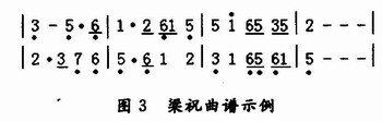 因此,可以所選曲譜的最短音符作為時(shí)值的度量單位。比如,圖3所示的《梁祝》曲譜中最短的音符為8分音,若其編碼存放1個(gè)存儲(chǔ)單元,則時(shí)值計(jì)數(shù)脈沖周期為一個(gè)8分音長時(shí)間,可選O.5s。曲譜中的四分音符碼需要存放2個(gè)單元,一拍延長音也需要2個(gè)單元。該段曲譜有8個(gè)音節(jié),每個(gè)音節(jié)是一個(gè)全音(8個(gè)8分音),演奏總時(shí)值為8×8個(gè)8分音。所以,存儲(chǔ)曲譜編碼的存儲(chǔ)器需要64個(gè)存儲(chǔ)單元。