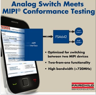 飛兆半導(dǎo)體公司(FaIRchild SemicONductor)開發(fā)了一款低功率、雙數(shù)據(jù)對2:1、高速MIPI開關(guān)產(chǎn)品FSA642。該器件是飛兆半導(dǎo)體MIPI兼容開關(guān)系列的新產(chǎn)品,是目前唯一通過MIPI UNH-IOL的700Mbps數(shù)據(jù)率互用性測試的MIPI開關(guān)。