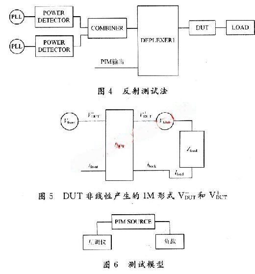 該系統(tǒng)中兩個大功率載頻f1和f2通過雙工濾波器發(fā)射到DUT,終端接50 Ω負載。PIM產(chǎn)生的雜散信號在DUT中產(chǎn)生,并在兩個方向傳播——“前向”到匹配負載,“反向”到雙工濾波器。發(fā)射激勵信號的頻率和被測的IM產(chǎn)物的頻 率由雙工濾波器的TX和RX通道決定。接收機測量反向傳播的IM波功率。