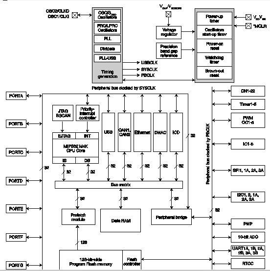 另外,不要忽視那些可能導(dǎo)致嚴(yán)重預(yù)算問題的膠合邏輯,如看門狗定時器、低電壓檢測、電壓整流器、主時鐘/外設(shè)時鐘/實(shí)時時鐘等。這些功能的集成,使PIC32 系列成為真正適用于“控制”應(yīng)用的芯片,有別于“計(jì)算機(jī)”芯片。