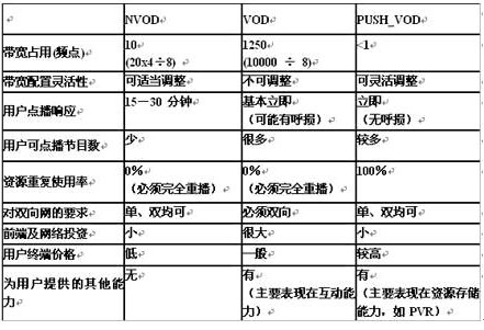 將目前常見的幾種有線數(shù)字電視網(wǎng)絡(luò)服務(wù)類型進(jìn)行比較,一種是最基礎(chǔ)的廣播型電視服務(wù),一種是NVOD,還有是真正的VOD業(yè)務(wù)。這幾種業(yè)務(wù)有什么不同:廣播型的業(yè)務(wù)還是像以前的電視一樣,雖然是臺多了,但是普遍的受眾沒有選擇的余地,沒有選擇的內(nèi)容,放什么看什么。NVOD相對來說有了一定程度的可選擇性,我們可以選擇在不同的時(shí)段來看內(nèi)容,可選擇的內(nèi)容是固定的,還是由運(yùn)營商來確定的?;与娨昖OD業(yè)務(wù)有非常好的互動能力,強(qiáng)調(diào)了互動的能力,可選的業(yè)務(wù)非常多。很顯然互動電視業(yè)務(wù)是非常受歡迎的業(yè)務(wù)。但是沒有大批量地推廣開來,只是在大城市做的好些,很多地區(qū)在平移,涉及到了互動電視的問題,前端需要投入大量的人力、財(cái)力、物力。NVOD加少量的服務(wù)器和少量的資源就可以完成,但是要實(shí)現(xiàn)互動必須要進(jìn)行雙向的改造。從實(shí)現(xiàn)服務(wù)所需要增加的投入來看,廣播電視已經(jīng)做到,NVOD非常少,互動電視業(yè)務(wù)非常多??梢钥吹交与娨晿I(yè)務(wù)與PUSH-VOD系統(tǒng)是矛盾,雖然資源消耗極大,但是有非常好的優(yōu)勢和有很良好的互動性。