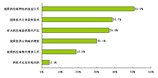 通過對替代方式的調查發(fā)現(xiàn),不同品牌物料之間的替換成為2010年使用替代物料的最主要方式,而2009年的調查結果中廠商新老產品替換占據(jù)主流。替代方式側重點的變化也反映了供應鏈中物料品牌替換比較活躍,這為新的品牌供應商切入市場提供了機會。那么工程師如何獲得品牌替代信息呢?通過調查發(fā)現(xiàn),使用在線工具是尋找物料品牌替代信息成為新寵。在線工具包括供應商網(wǎng)站的選型工具、目錄分銷商的搜索工具、供應商替代搜索工具。此外,技術文章也是影響工程師選擇的重要方式,而技術文章恰恰是國內元器件供應商的短板。