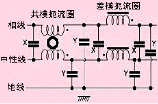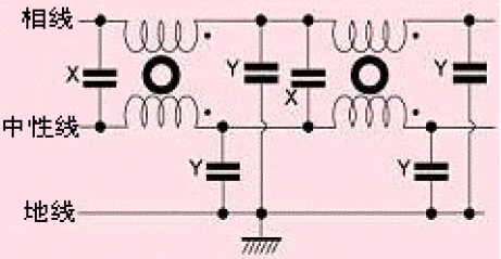 大多數(shù)電源線濾波器采用Y型電容,這些電容連接在相線與地線之間。為了不超過相關(guān)安全標(biāo)準(zhǔn)限定的地線允許泄漏值,這些電容的值大約在幾nF左右。一般地,Y電容應(yīng)連接到噪聲干擾較大的導(dǎo)線上(例如,儀表靈敏模擬電路中的電源線,開關(guān)電源中的整流器等)。