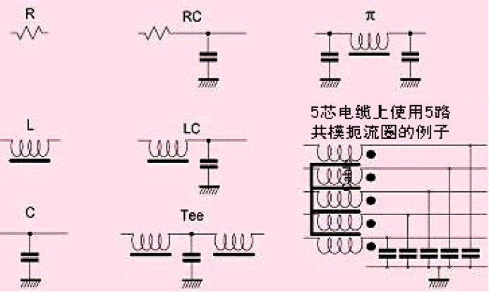 圖4 各種信號線濾波器