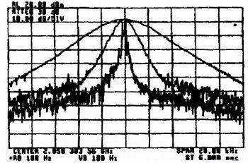 下面舉例說(shuō)明不同頻率分辨率和頻率選擇性對(duì)分辨不等幅信號(hào)的影響。如果RES BW為3 kHz濾波器的頻率選擇性為15:1,于是濾波器下降60 dB的帶寬是45 kHz,60 dB的帶寬一半是22.5 kHz,那么距離大信號(hào)22.5 kHz以外-60 dBc的信號(hào)是可以檢測(cè)到的。如果換接到另外一個(gè)RES BW為1 kHz頻率選擇性為15:1窄帶濾波器,于是濾波器下降60 dB的帶寬是15 kHz,60 dB的帶寬一半是7.5 kHz,那么距離大信號(hào)7.5 kHz以外~60 dBc的信號(hào)是可以檢測(cè)到的。或者換接到另外一個(gè)RES BW為3 kHz頻率選擇性為5:1的濾波器,于是濾波器下降60 dB的帶寬是45 kHz,60 dB的帶寬1/2是7.5 kHz那么距離大信號(hào)7.5 kHz以外-60 dBc的信號(hào)是可以檢測(cè)到的。圖4是頻率選擇性為15:1中的頻濾波器RES BW=1 kHz,RES BW=10 kHz時(shí),頻譜分析儀測(cè)量結(jié)果,可以看到在RES BW=1 kHz時(shí),距離大信號(hào)7.5 kHz以外-60 dBc的信號(hào)是可以檢測(cè)到的。