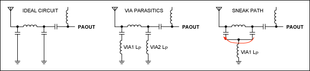 Maxim ISM-RF產(chǎn)品的數(shù)據(jù)資料往往建議使用盡可能短的高頻輸入、輸出引線,從而將損耗和輻射降至最小。另一方面,這種損耗通常是由于非理想寄生參數(shù)引起的,所以寄生電感和電容都會(huì)影響電路布局,使用盡可能短的引線有助于降低寄生參數(shù)。通常情況下,10 mil寬、距離地層0.0625in的PCB引線,如果采用的是FR4電路板,則產(chǎn)生大約19nH/in的電感和大約1pF/in的分布電容。對(duì)于具有20nH電感、3pF電容的LAN/混頻器電路,電路、元器件布局非常緊湊時(shí),會(huì)對(duì)有效元件值造成很大影響。