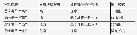 基于每個耳機檢測電路端口設(shè)計會採用不同要求,因此,該聲頻子系統(tǒng)提供兩個獨立的耳機(HP)控制輸入接腳。耳機的允許輸入可啟動SE輸出耳機模式和關(guān)閉BTL輸出模式。耳機感應檢測輸入需要用一個常規(guī)立體聲耳機插孔配合一起使用。剩余的HP邏輯輸入,能允許使用一個標準邏輯電平(Logic Level)來控制。