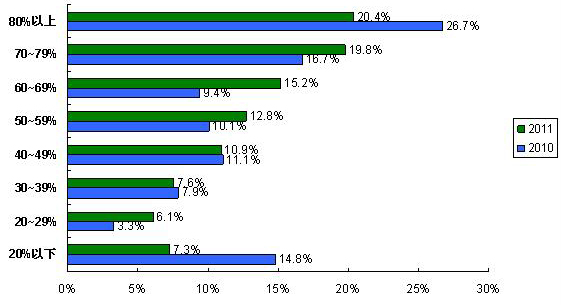 供求雙方把伙伴關(guān)系建立在專業(yè)評估的基礎(chǔ)上,通過系統(tǒng)流程可以有效減少供應商認證和引入過程中的不合理操作、暗箱操作、防范采購風險、提高采購效率。在供應商認證與引入過程中,沒有建立和認為沒必要建立系統(tǒng)流程的受訪者比例由2010調(diào)查的25%(22.1%+2.9%)降至2011調(diào)查的15.2%(13.4%+1.8%),已經(jīng)建立流程并且得到很好實施的比例也由2010調(diào)查的53.9%上升至2011調(diào)查的58.4%。