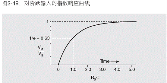 在對高阻抗源進行電壓測量時(圖2-47),電壓表(VM)兩端的電容(CIN)必須通過RS充電。輸出電壓對時間的函數(shù)關系為: