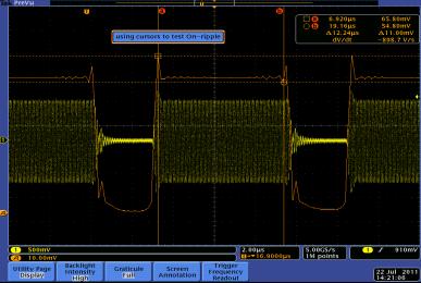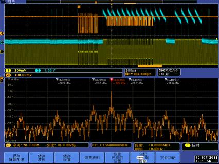 另一個需要嚴格保證的時間是從讀寫器發(fā)出讀卡信號后到標簽返回信號的時間。過長或過短的時間都會被認作讀寫失敗。使用傳統(tǒng)儀器測量這些信號的難度很大。MDO4000可以將RF信號的AvsT的軌跡完整展示的屏幕中,用戶只需用光標定位到相應位置,即可得到這一延遲時間。
