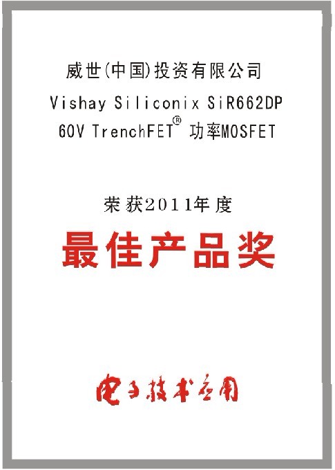 - Vishay功率MOSFET榮獲《電子技術(shù)應用》雜志“中國優(yōu)秀電子產(chǎn)品”獎