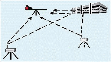 HAAT系統(tǒng)可用來評(píng)估在分集組合和自適應(yīng)波束形成試驗(yàn)中各種天線配置的性能(典型的應(yīng)用如圖1)。圖2給出了一個(gè)采用HAAT系統(tǒng)的典型試驗(yàn)場(chǎng)景。接收器將來自兩個(gè)或更多接收信道的信號(hào)下變頻到基帶。這些信號(hào)被記錄在數(shù)字錄音帶上,以便利用適當(dāng)?shù)乃惴ㄟM(jìn)行離線處理。接收器在2.8米長(zhǎng)的軌道上以模仿人行走的恒定速度移動(dòng)。一個(gè)小型手持式無線電裝置支撐著兩個(gè)天線,天線的間隔和方向是可變的。該系統(tǒng)具有如下特性:2.05GHz CW信號(hào);兩個(gè)發(fā)射器;一個(gè)接收器(兩個(gè)信道,可擴(kuò)展至4個(gè));2.8米線性軌道可連續(xù)收集數(shù)據(jù),并離線處理;高度便攜式電池供電系統(tǒng);手持接收器的真實(shí)工作環(huán)境。