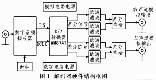 音頻解碼器廣泛應(yīng)用于日常生活中。不同應(yīng)用場合對音頻解碼器性能的要求差異很大。而影響音質(zhì)的因素有多種,如音頻編碼格式、傳輸方式、編解碼器件的性能等。數(shù)模轉(zhuǎn)換是解碼電路的關(guān)鍵部分,其性能高低直接影響聲音回放質(zhì)量。為了獲得高質(zhì)量的模擬聲音信號,這里設(shè)計一種基于高性能立體聲數(shù)模轉(zhuǎn)換器WM8741的音頻解碼器設(shè)計方案,該系統(tǒng)支持高達(dá)24位、192kHz的數(shù)字音頻信號解碼,還支持其他多種速率的標(biāo)準(zhǔn)數(shù)字音頻信號的輸入。