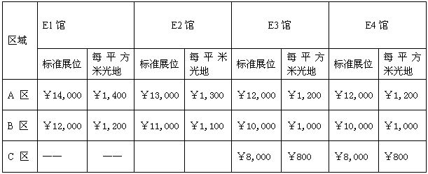 (A) 標(biāo)準(zhǔn)展位(每個(gè)標(biāo)準(zhǔn)展位為3米×3米=9平方米) 標(biāo)準(zhǔn)展位設(shè)施配備為:三面鋁合金圍板、滿鋪地毯、兩只射燈、兩把折椅,一張問(wèn)詢桌和一個(gè)220V/500W的電源插座,楣板上書(shū)中英文公司名稱(chēng)。單個(gè)拐角位置展位費(fèi)增加10%