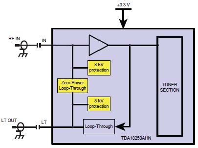 隨著更嚴(yán)格的歐盟生態(tài)設(shè)計規(guī)范的實施,廠商和消費者逐漸認(rèn)識到減少待機(jī)功耗的重要性。在每天三小時的機(jī)頂盒使用中,環(huán)路輸出所消耗的電能通常比調(diào)諧器本身消耗的還要多。使用TDA18250A和TDA18260A可大幅降低有線機(jī)頂盒在待機(jī)模式下的功耗,同時使環(huán)路輸出功能仍然保持有效——消費者甚至不用打開機(jī)頂盒就能觀看模擬電視。在硅調(diào)諧器內(nèi)集成零功率環(huán)路輸出,意味著恩智浦正在發(fā)布一項重大創(chuàng)新,而這項創(chuàng)新無需使用額外的分立元件或在有線機(jī)頂盒的設(shè)計與生產(chǎn)中引入額外的復(fù)雜性。憑借這一創(chuàng)新成果,恩智浦將繼續(xù)加強(qiáng)硅調(diào)諧器在價格敏感型應(yīng)用中相對于傳統(tǒng)金屬調(diào)諧器的優(yōu)勢:無需昂貴的外部元件(如LNA、SAW濾波器及平衡轉(zhuǎn)換器)、尺寸更小、系統(tǒng)更穩(wěn)定、總系統(tǒng)成本更低。