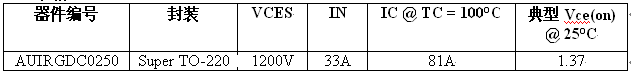 1200V AUIRGDC0250 采用緊湊的 Super TO-220 封裝,低 VCE(on) 可讓該器件降低功耗并實(shí)現(xiàn)更高的功率密度,正 VCE(on) 溫度系數(shù)則使其更適合并聯(lián)。此外,AUIRGDC0250 還提供經(jīng)過優(yōu)化的方形反向偏壓安全操作區(qū) (RBSOA)。AUIRGDC0250 的軟開關(guān)特性使其成為幫助客戶符合系統(tǒng)級(jí) EMI 規(guī)范的理想選擇。