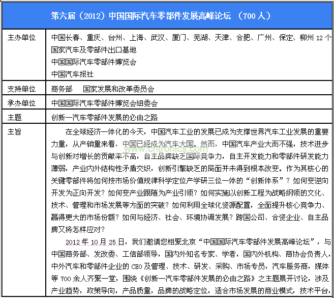第六屆中國國際汽車零部件發(fā)展高峰論壇,將以“創(chuàng)新—汽車零部件發(fā)展的必由之路”為主題,誠邀業(yè)界廣泛參與,激情碰撞,智慧共享。