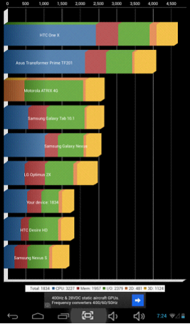 具有600MHz主頻SGX PVR540 GPU的RK3168在此項(xiàng)測(cè)試上遠(yuǎn)遠(yuǎn)拋離A20的Mail 400 @350Mhz,充分體現(xiàn)了兩者在GPU性能上的巨大差距。目前GPU性能對(duì)于平板來(lái)說(shuō)是僅次于CPU的重要指標(biāo),很大程度上決定了整機(jī)在運(yùn)行大型游戲、播放在線(xiàn)視頻等方面的體驗(yàn),對(duì)消費(fèi)者來(lái)說(shuō)是非常重要的考慮因素。