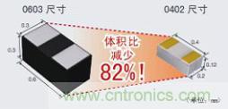 與以往的0603尺寸產(chǎn)品相比,尺寸成功減少了 82%(體積比)
