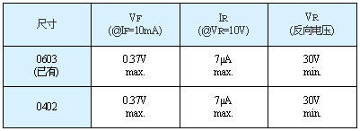 <0402(0.4mm×0.2mm)尺寸的肖特基勢(shì)壘二極管>