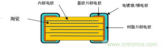 圖3:一般性的MLCC的電路板偏轉(zhuǎn)應(yīng)力(橫截面照片)