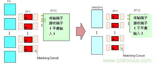 隨著更進一步的移動終端小型化和多頻段化的推進,今后搭載元器件的小型化和復合化會成為必要的條件。通過分立器件產(chǎn)品的小型化實現(xiàn)的實裝面積的縮小已經(jīng)到達了界限,周邊產(chǎn)品的PA/SW/匹配元素等組合起來的模塊元件將來會成為必備品。村田制作所通過模塊產(chǎn)品用的獨特構造成功開發(fā)了甚至連模具尺寸都實現(xiàn)了小型化的產(chǎn)品,推進了模塊產(chǎn)品小型化的進程。