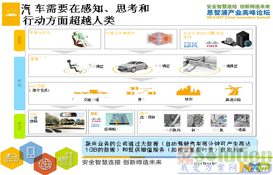 Owen展現(xiàn)智能汽車(chē)安全互聯(lián)的美好場(chǎng)景。一個(gè)安全互聯(lián)的智能汽車(chē)就是未來(lái)。車(chē)有自己的感知系統(tǒng),在思考和行動(dòng)方面都超越了人類(lèi),它會(huì)自動(dòng)地去決定該行駛的速度,在感知到前面有個(gè)物體的時(shí)候它會(huì)自動(dòng)停車(chē),或者當(dāng)車(chē)感知到前面有交通擁堵的狀況發(fā)生,它會(huì)自然而然的慢下速度,而且會(huì)保持一個(gè)安全距離。在智能汽車(chē)的世界里,更多的是采用電子的系統(tǒng),也意味著發(fā)動(dòng)機(jī)的效率也會(huì)更加提高。