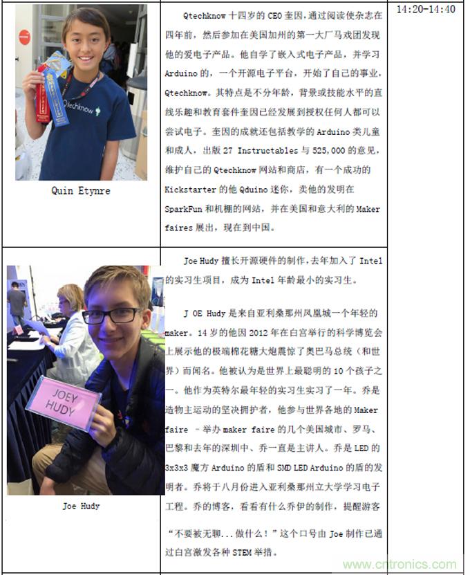 附4:嘉賓詳情見附件“Maker Faire 深圳2015 嘉賓名單”