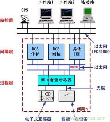 交換機和網(wǎng)線所代替,信息的交互由基于硬接線的方式,變?yōu)榱嘶诰W(wǎng)絡(luò)的方式。常規(guī)的電壓互感器和電流互感器被電子互感器所取代。