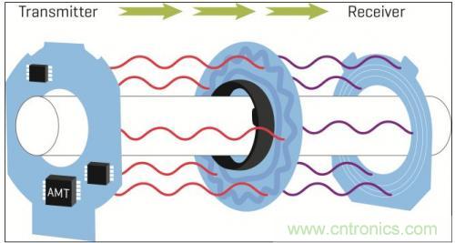 除了利用磁場而非光束之外,磁編碼器的結(jié)構(gòu)與光學(xué)編碼器類似。磁編碼器用磁盤代替帶槽光輪,磁盤在一組磁阻傳感器上轉(zhuǎn)動(dòng),在這些傳感器中產(chǎn)生響應(yīng),傳遞給信號(hào)-調(diào)節(jié)前端電路,用于確定軸的位置。雖然這種編碼器的耐用性較高,但是容易受到電機(jī)產(chǎn)生的電磁干擾影響,準(zhǔn)確性不如光學(xué)編碼器。