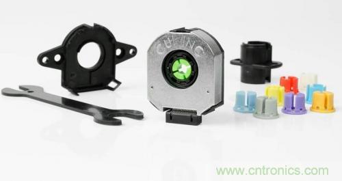 基于電容式技術(shù)之編碼器具備眾多優(yōu)勢,不僅僅提供了改進(jìn)的性能和可靠性,比如CUI的AMT31器件內(nèi)置ASIC/微控制器,提供了支持可編程設(shè)置和安裝特性的智能功能,實(shí)現(xiàn)運(yùn)作智能并且簡化存貨管理。當(dāng)這些特性結(jié)合基于PC的GUI,能夠提供易于使用的復(fù)雜功能,極大地簡化編碼器使用的方方面面,從樣品設(shè)計(jì)、評測和調(diào)試,直至安裝和配置,以及診斷和存貨最小化。所有這些均以針對其它編碼器的類似價(jià)格,維持與標(biāo)準(zhǔn)輸出類型和格式的兼容性,同時(shí)實(shí)現(xiàn)較低的功耗。AMT31具有易于安裝的適配器,用于不同的電機(jī)軸尺寸,參見圖5,它代表著利用智能接口的合理以提供其它編碼器技術(shù)所不具備的廣泛優(yōu)勢的下一步舉措。