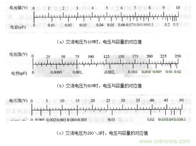 圖6 萬用表刻度盤上交流電壓與電容容量相對應的刻度