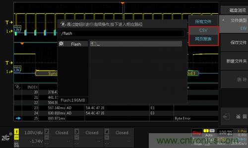 同時(shí),支持解碼細(xì)節(jié)顯示,具有詳細(xì)的事件表(事件表內(nèi)容包括開始時(shí)間、結(jié)束時(shí)間、名稱及數(shù)據(jù)),可以以報(bào)表網(wǎng)頁或CSV格式導(dǎo)出,方便工程師進(jìn)一步分析,如圖11所示。