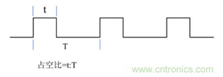 脈沖寬度調(diào)制(PWM)是一種對模擬信號進行數(shù)字編碼的方法。通過高分辨率計數(shù)器的使用,方波的占空比被調(diào)制用來對一個具體模擬信號進行編碼。PWM信號仍然是數(shù)字的,因為在給定的任何時刻,滿幅值的直流供電要么完全有(ON),要么完全無(OFF)。電壓或電流是以一種通(ON)或斷(OFF)的重復脈沖序列被加到模擬負載上去。通的時候即是直流供電被加到負載上的時候,斷的時候即是供電被斷開的時候。只要帶寬足夠,任何模擬值都可以使用PWM進行編碼。而占空比就是高電平持續(xù)時間與整個周期時間的比值,占空比越大,高電平持續(xù)的時間越長,模擬電路開通的時間就越長,如圖1所示。
