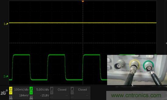 1. 通道1探頭地使用鱷魚(yú)夾接地,通道2關(guān)閉(證明通道1信號(hào)原狀,見(jiàn)圖2)
