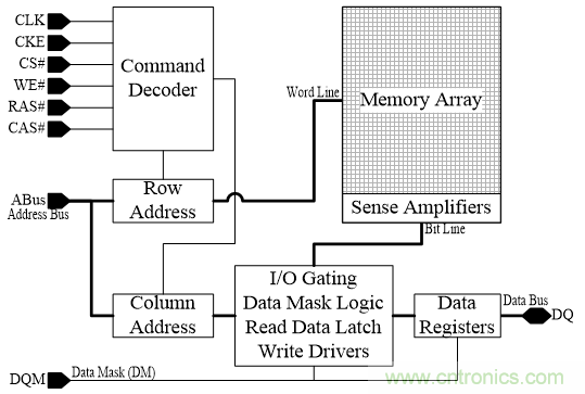 圖1:SDRAM的簡要功能方塊圖。