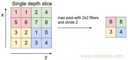 上圖中通過(guò)對(duì)每個(gè)顏色塊篩選出最大數(shù)字進(jìn)行池化,以減小計(jì)算數(shù)據(jù)量。