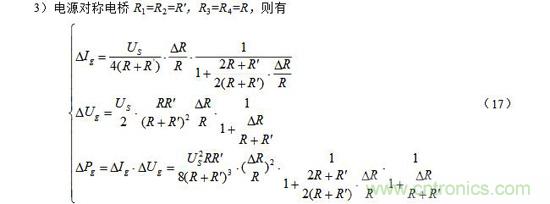 這時(shí)從電橋的電源端看橋臂電阻對(duì)稱,即R1=R2=R′,R3=R4=R,且R≠R′。