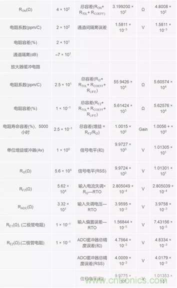 選擇合適的無源器件對于信號鏈中的累積誤差就如有源器件一樣有用。編制電子表格并對數(shù)據(jù)進行分類,有助于快速考慮多種不同的器件和折衷情況。最后,誤差的累積可能表現(xiàn)為多種不同形式,最常用的方法是RSS精度法。