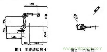 根據(jù)A II—V6L型工業(yè)機器人的主要參數(shù)進行設(shè)計。主要結(jié)構(gòu)尺寸如圖I所示。機器人的工作范圍見圖2。