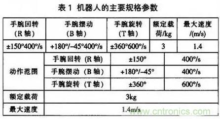 確定了空間結(jié)構(gòu)和手腕結(jié)構(gòu)后,可確定手腕回轉(zhuǎn)、手腕擺動及手腕旋轉(zhuǎn)三個姿態(tài)的自由度。其參數(shù)見表l (參數(shù)來于SSA2000工業(yè)機器人)。