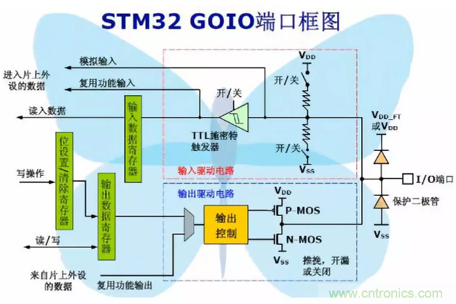 3、 GPIO口貌似有兩個反向串聯(lián)的二極管用作鉗位二極管。
