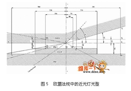 光學(xué)設(shè)計(jì)時(shí)先考慮法規(guī)需求,討論視角與強(qiáng)度關(guān)系,以近燈為例須針對(duì)其特殊的15度揚(yáng)角設(shè)計(jì),如圖5所示。在傳統(tǒng)的燈具設(shè)計(jì)上由先期的利用反射罩配合透鏡刻紋作角度與強(qiáng)度的控制,演變成為利用反射罩直接控制強(qiáng)度角度,也發(fā)展出利用成像方式的魚(yú)眼透鏡設(shè)計(jì)法。不論何種的設(shè)計(jì)方式都須先考慮選用光源的特性,特別是角度與強(qiáng)度的光型輸出(Beam?。穑幔簦簦澹颍睿?,對(duì)傳統(tǒng)的光源而言,大多為柱狀光源,可產(chǎn)生類似蝴蝶外型的光型輸出,進(jìn)而發(fā)展出來(lái)與之搭配的透鏡、反射罩、擋板、透鏡等光學(xué)組件。而利用LED作為光源設(shè)計(jì)燈具時(shí),需重新考慮其光學(xué)特性由傳統(tǒng)的柱狀光源變?yōu)槠矫婀庠矗ú煌姆庋b設(shè)計(jì)有不同的光型輸出),進(jìn)而搭配外部的光學(xué)組件而產(chǎn)生不同組合以應(yīng)用于不同產(chǎn)品,依照德國(guó)車(chē)燈大廠HELLA的設(shè)計(jì)分類,可將光源分為八大類,如圖6 所示。LED目前的單位面積發(fā)光量尚不及鹵素?zé)襞菖c放電式燈泡,想得到相同的流明輸出,LED需要較大的封裝面積。隨著光源輸出面積的增加,光學(xué)設(shè)計(jì)的難度也隨之提升,所以在現(xiàn)有的概念車(chē)上,都以模塊化光學(xué)設(shè)計(jì)取代既有的單一燈室設(shè)計(jì),利用多組燈源達(dá)到傳統(tǒng)燈具的照明水平,除了降低光學(xué)設(shè)計(jì)的難度,也增加車(chē)體造型的設(shè)計(jì)感。