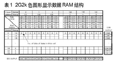 每個(gè)象素對(duì)應(yīng)18-bit的數(shù)據(jù),其中每個(gè)三色子象素為6-bit。GDDRAM對(duì)圖形顯示的象素?cái)?shù)據(jù)具體對(duì)應(yīng)安排見(jiàn)表1。