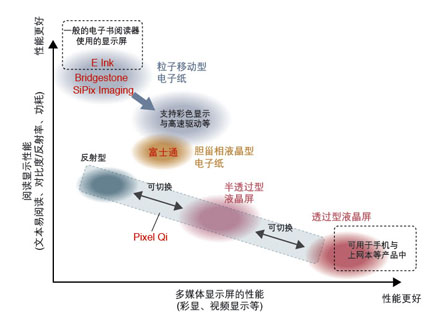 具體來說,日本Bridgestone公司與美國SiPix Imaging公司等多家廠商已經(jīng)開始為電子書閱讀器提供電子紙。美國初創(chuàng)企業(yè)Pixel Qi公司也開始提供具有專門設(shè)計(jì)的電子紙顯示模式的液晶顯示屏。