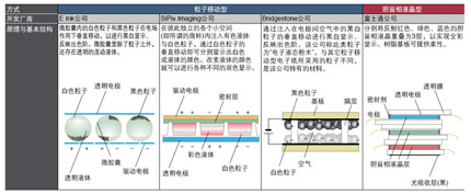 表1 已進(jìn)入實(shí)用化階段的主要電子紙技術(shù)的比較