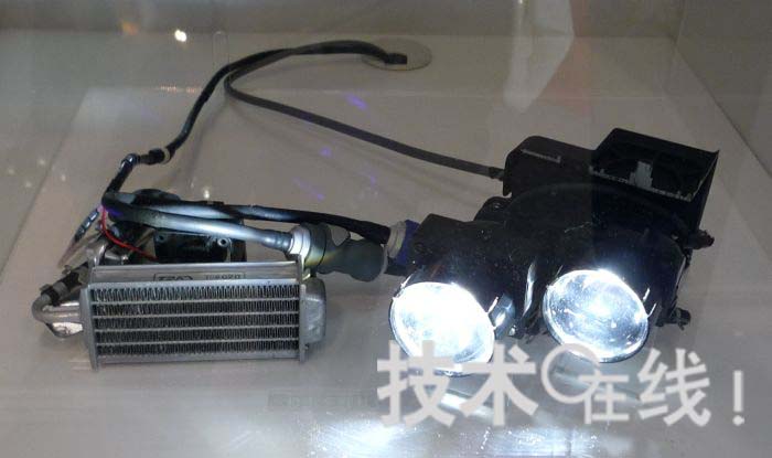 這種前照燈將爭取在2~3年后配備于汽車。實用化還面臨著成本問題。雖然取消散熱片可以降低成本,但是由于散熱器和泵為專用品,因此導致了成本的上升。為了達成實用化,該公司將設法解決這一問題。