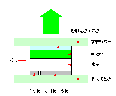 由于金屬電極是沿著同一塊玻璃基板排列,所以剛發(fā)射出來的電子是在玻璃基板表面?zhèn)鲗?dǎo)的,這是這種器件被命名為表面?zhèn)鲗?dǎo)電子發(fā)射顯示器的原因,這也是SED顯示器與其它場致發(fā)射顯示器的主要區(qū)別。SED電視目前的最大亮點是畫質(zhì)好,它的解析度與液晶電視基本相同,而灰度表現(xiàn)力,可視角度,色域范圍,動態(tài)畫面表現(xiàn),暗部細(xì)節(jié)表現(xiàn)力等,均可達(dá)到高級的CRT電視水平。由于SED生產(chǎn)技術(shù)基本上被東芝公司壟斷,因此,SED顯示器在未來十幾年內(nèi)不可能發(fā)展成為主流產(chǎn)品。圖7是SED顯示器的工作原理。