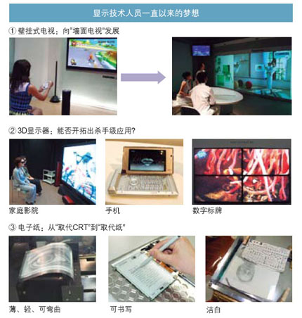 顯示器領(lǐng)域的技術(shù)人員一直以來都有三個(gè)夢想:壁掛式電視、3D顯示器及電子紙(見圖4)。
