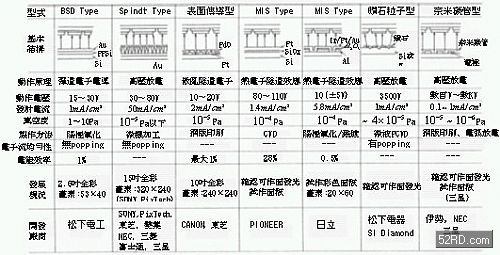 表1各種FED平面顯示器的動作原理與特性